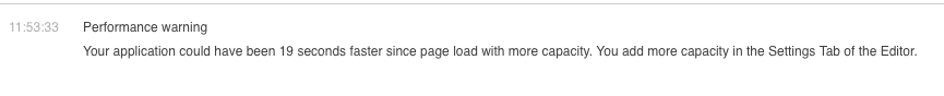 If you've done everything possible and you're still getting warnings like the below, it may be worthwhile to add some capacity to your application. You can always experiment using Bubble's "boost capacity" feature first before paying for it.