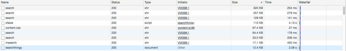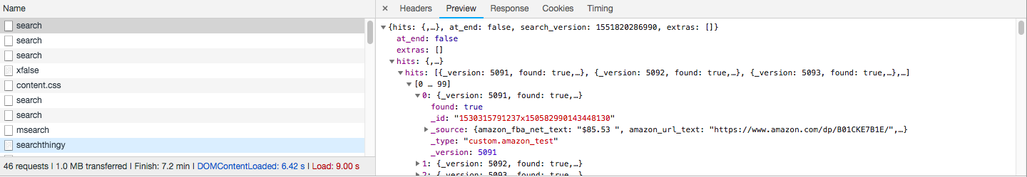 If you see items called "search" or "msearch" at the top, those represent searches that the application is doing. Click on one to inspect it.