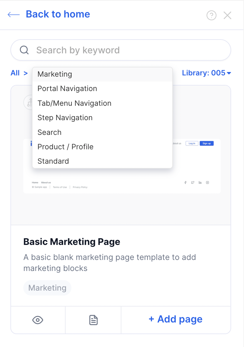 Alternatively, you can copy and paste a marketing block from another marketing page in your app and paste it to any other marketing pages.