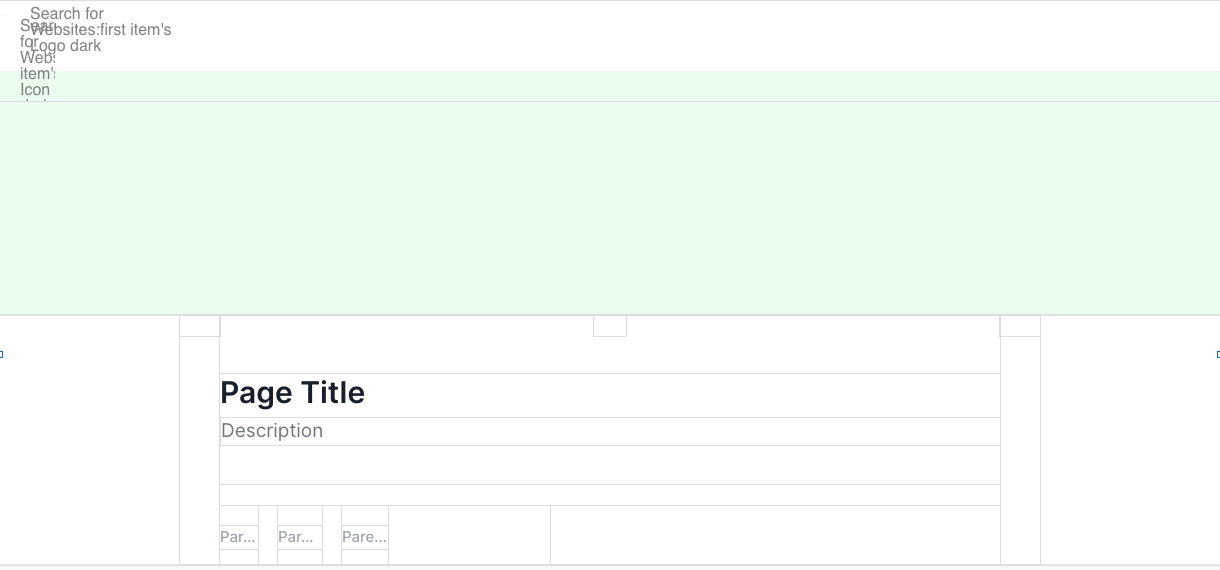 Some page templates will include a page-level group with a collapsible image banner, title, description, and toggle tabs. This group should be used when you want to further customize a page.