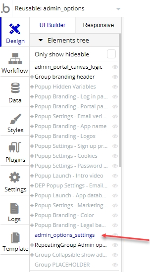 To do this, find the Group Nav 0/1/5 - Launch & Settings group. Within this group is a reusable element called admin_options. Within this is another reusable called admin_options_settings. You shouldn't need to touch any of the other elements/workflows within admin_options.