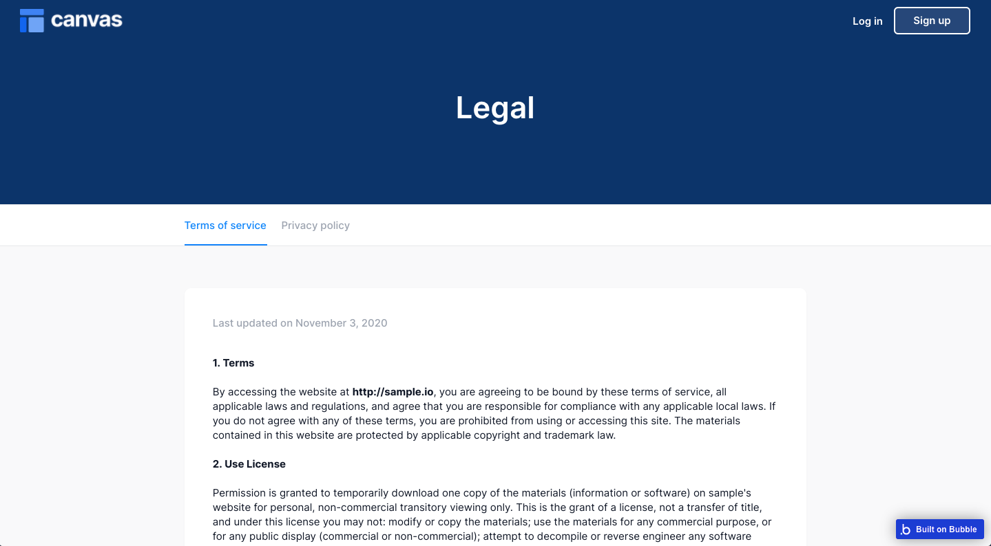 Page name: legal Purpose: Displays the text content for the Terms & Conditions and Privacy Policy.