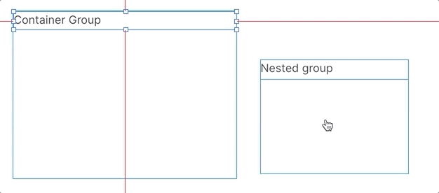 Nesting a group within another group can be achieved by dragging the group to be nested into the containing group. The border of the containing group will turn RED when the nested group is successfully nested