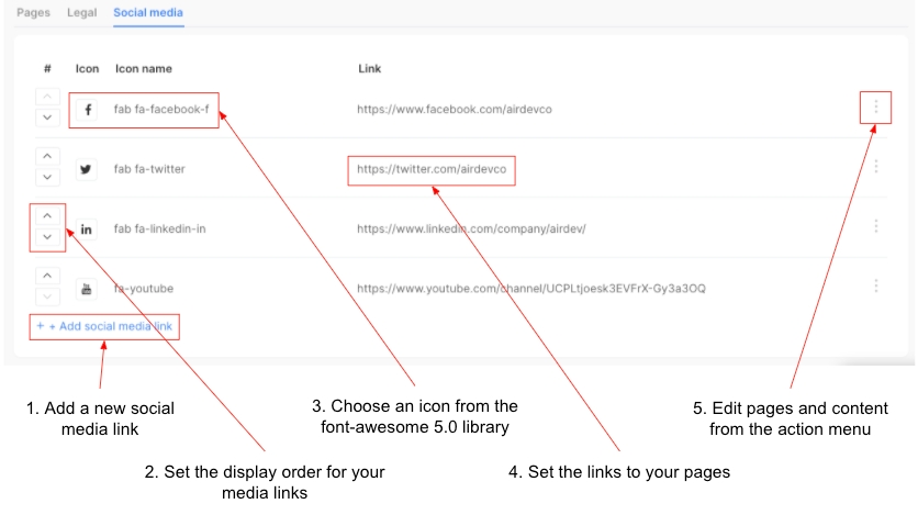 Get the most out of your social media by adding all your social media pages to the footer of your application!