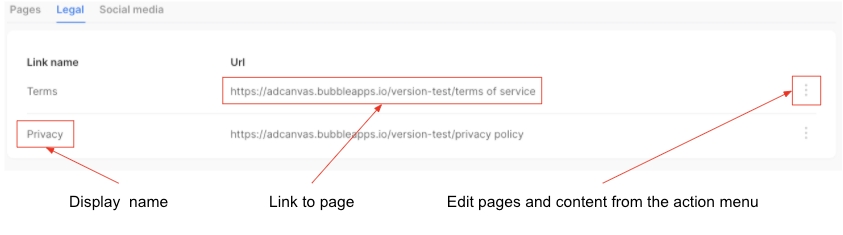 The Canvas template comes standard with Terms and Privacy pages. Edit all the settings for these pages here.