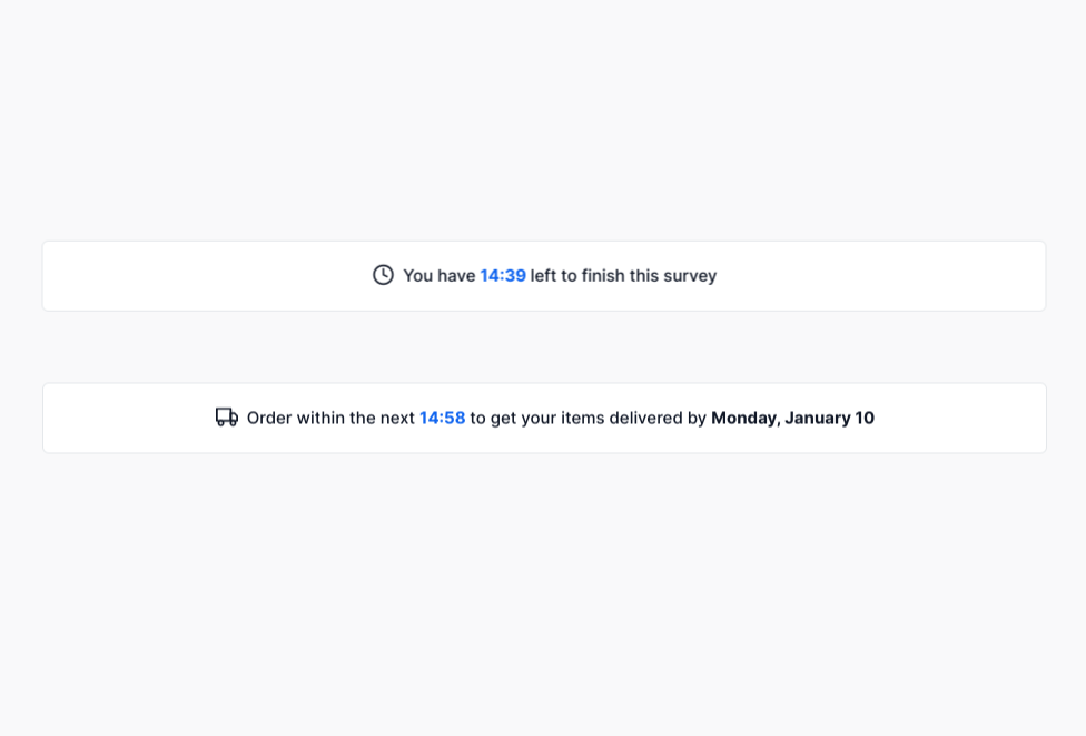 Use this group to instill a sense of urgency and to nudge the user to complete a certain action.