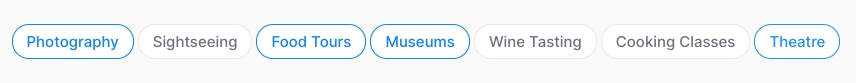 The CanvasMultiselectPills plugin element can display any list of Things in pill-shaped tabs. The pills are responsive in width and will adjust based on the display text of each pill.