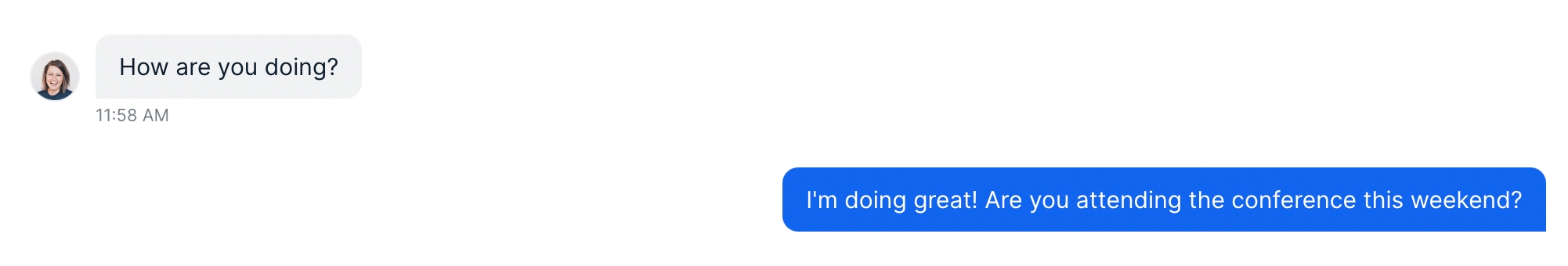 Group Main message input includes the UI to compose a message, attach a file, and view file attachments. When an attachment is added, it will show underneath the message input. Clicking on it will open the attachment in a new tab for previewing. Clicking on Group Inner delete file will delete the attachment and allow you upload a new attachment.