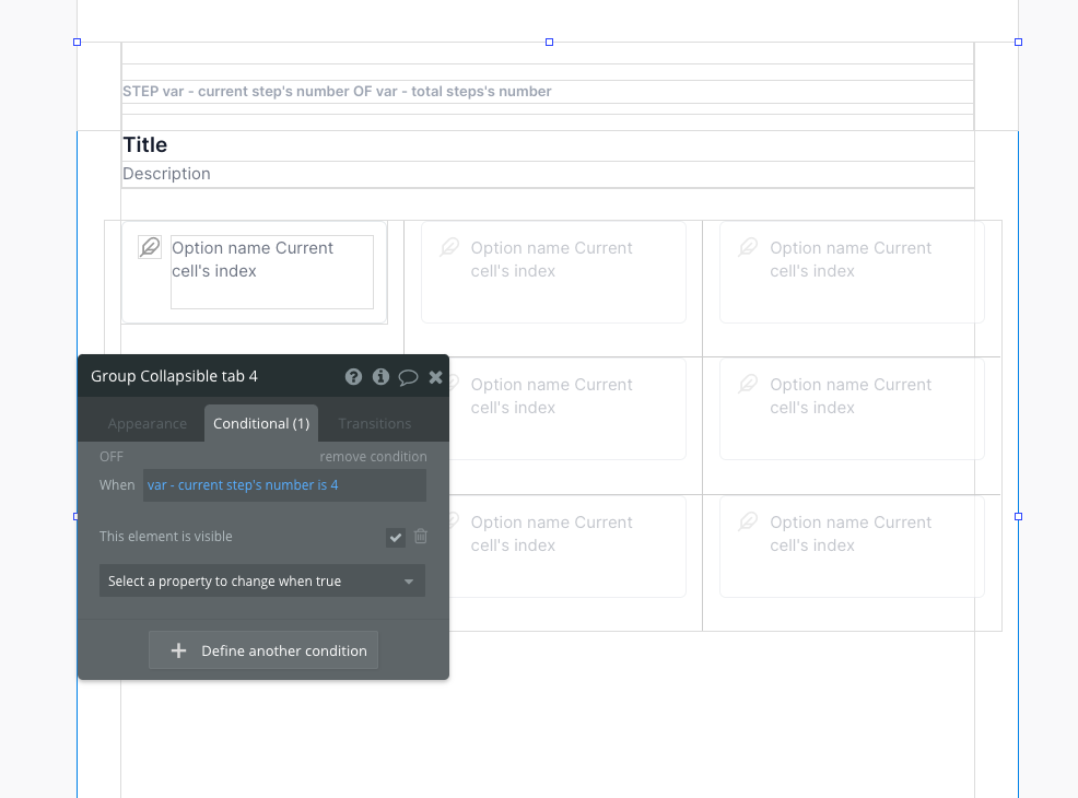 text) that the user is currently on.var - current step This group stores the current step (of type