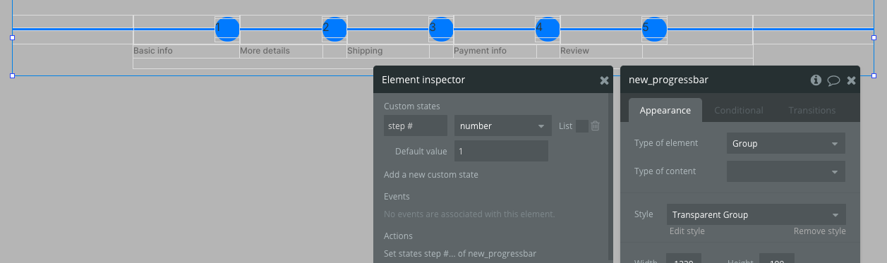 multistep_progressbar This reusable element contains the UI for the progress bar. It has a custom state called step # of type