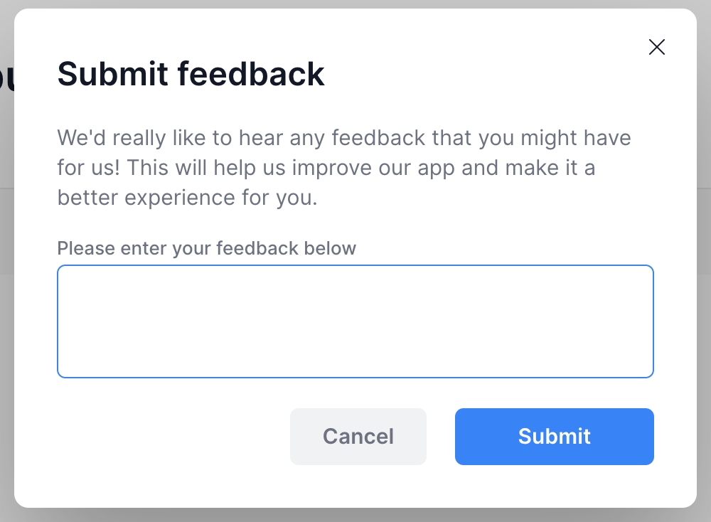 This popup should be used when you want to collect user feedback or enable users to contact another user such as the App Admin.