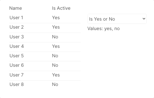 When filtering data by the yes/no field type in Bubble, you can only return values that are either Yes or No. For instance: