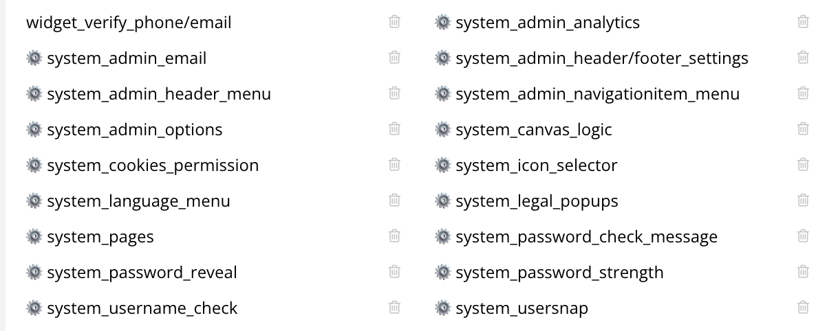 In names of data types and reusable elements, we have included a gear emoji (⚙) to indicate that these specific elements should not be edited, or that you should be very cautious about making changes there. These data types and reusables touch a lot of different features or are easy to break when changed.