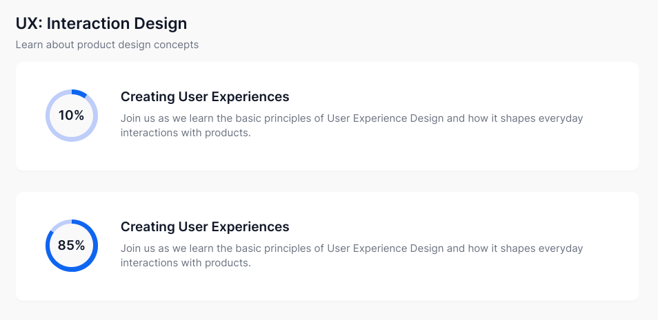 Please reference your progress/percentage numbers following the examples below: