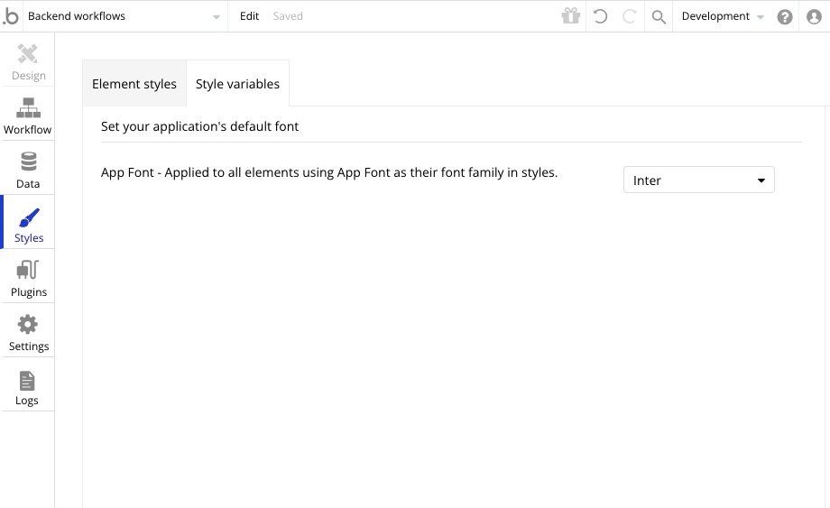 Easily change the App Font for all of your Canvas styles by going to your Bubble editor > Styles tab > and Styles variables.