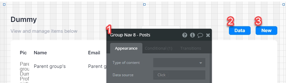 Set up the text that is displayed when no data is found. This is nested under Group inner dummy content > Group no entries.