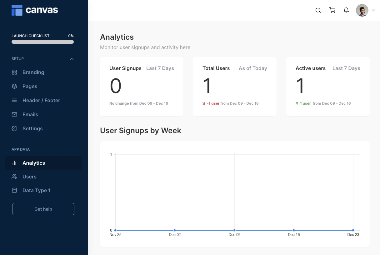 In your admin portal, we have a dedicated section for Canvas tools. This section includes various resources on how to use the Canvas Building Framework. The setup checklist contains a list of settings that you will need to update or activate to customize your Canvas app according to your needs.