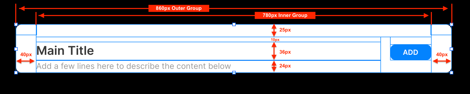 Outer Group: This group operates as a container for the entire section and has a width of 860px, a minimum width of 20%, and no maximum width set.