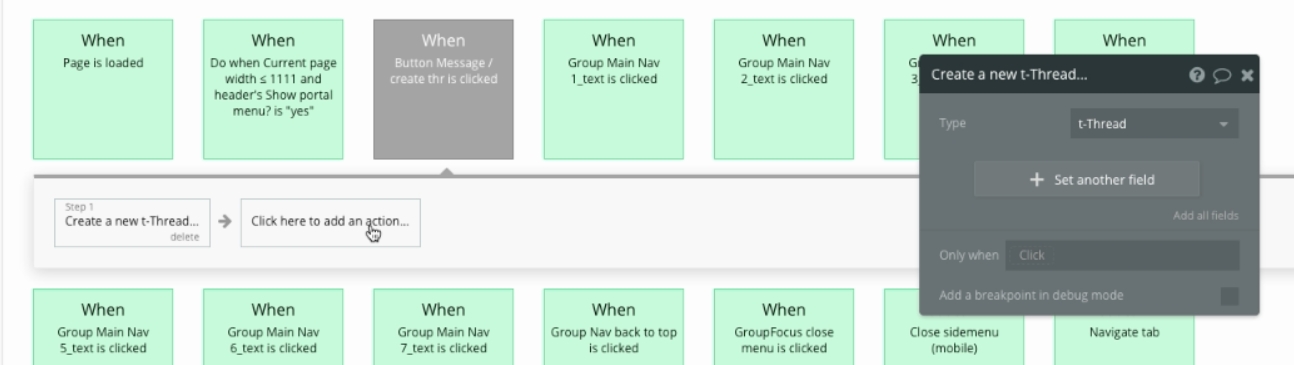 • Group Main threads list_thread This group contains the list of threads that the current user is a part of. All of the threads are displayed in RepeatingGroup t-Thread. Clicking on Group Main select thread_thread will hide Group Main threads list_thread and show the messages for the selected thread.