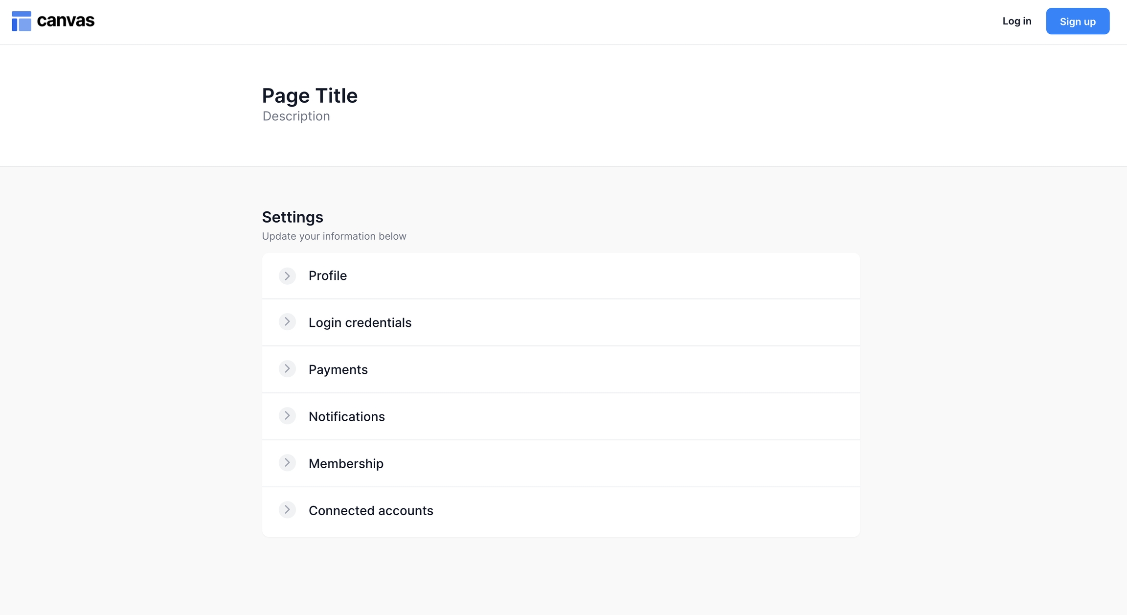 Use this for account pages where each section is its own subpage.
