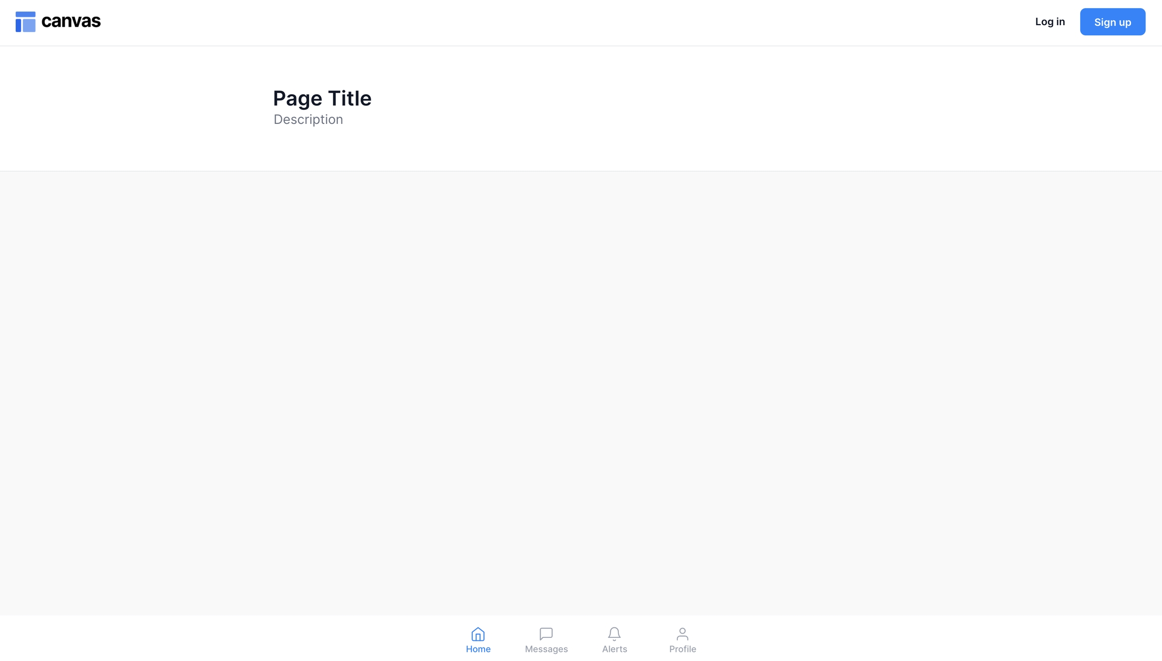 Standard one column page layout where multiple modules can be stacked on top of each other (they should not be overlapping). This page includes a bottom navigation menu that is optimized for use on mobile. The menu displays four destinations and each destination is represented by an icon and an optional text label. When a bottom navigation icon is tapped, the user is taken to the top-level navigation destination associated with that icon. Please ensure that you have installed the Feather Icon plugin to your app before submitting your page request.