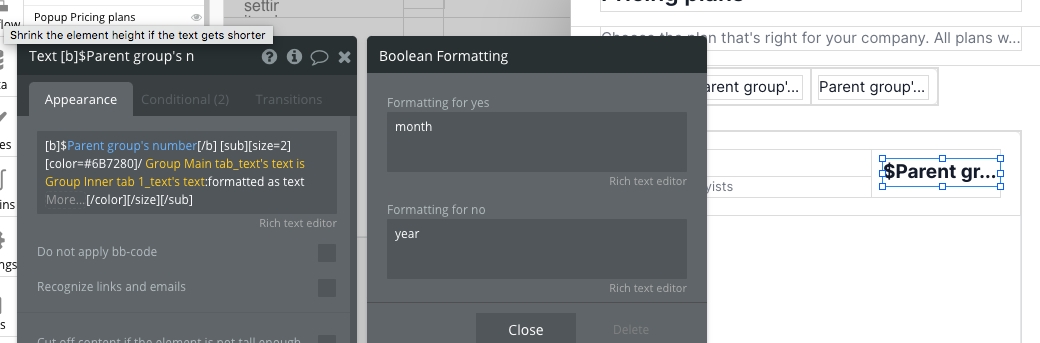 Select Group Inner price_number, Text Basic, and Text For hobbyists and remove all conditional statements on those elements (these are placeholders).