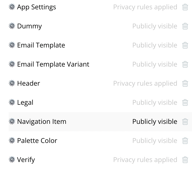 In names of data types and reusable elements, we have included a gear emoji (⚙) to indicate that these specific elements should not be edited, or that you should be very cautious about making changes there. These data types and reusables touch a lot of different features or are easy to break when changed.