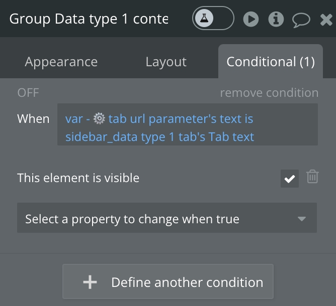 Show subtab (y/n) If selected, a chevron icon will show next to the Tab text