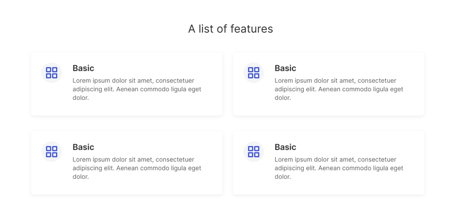 Group Main 2 column feature blocks This is block allows you to feature a list of items. Each item includes an icon, title, and description.