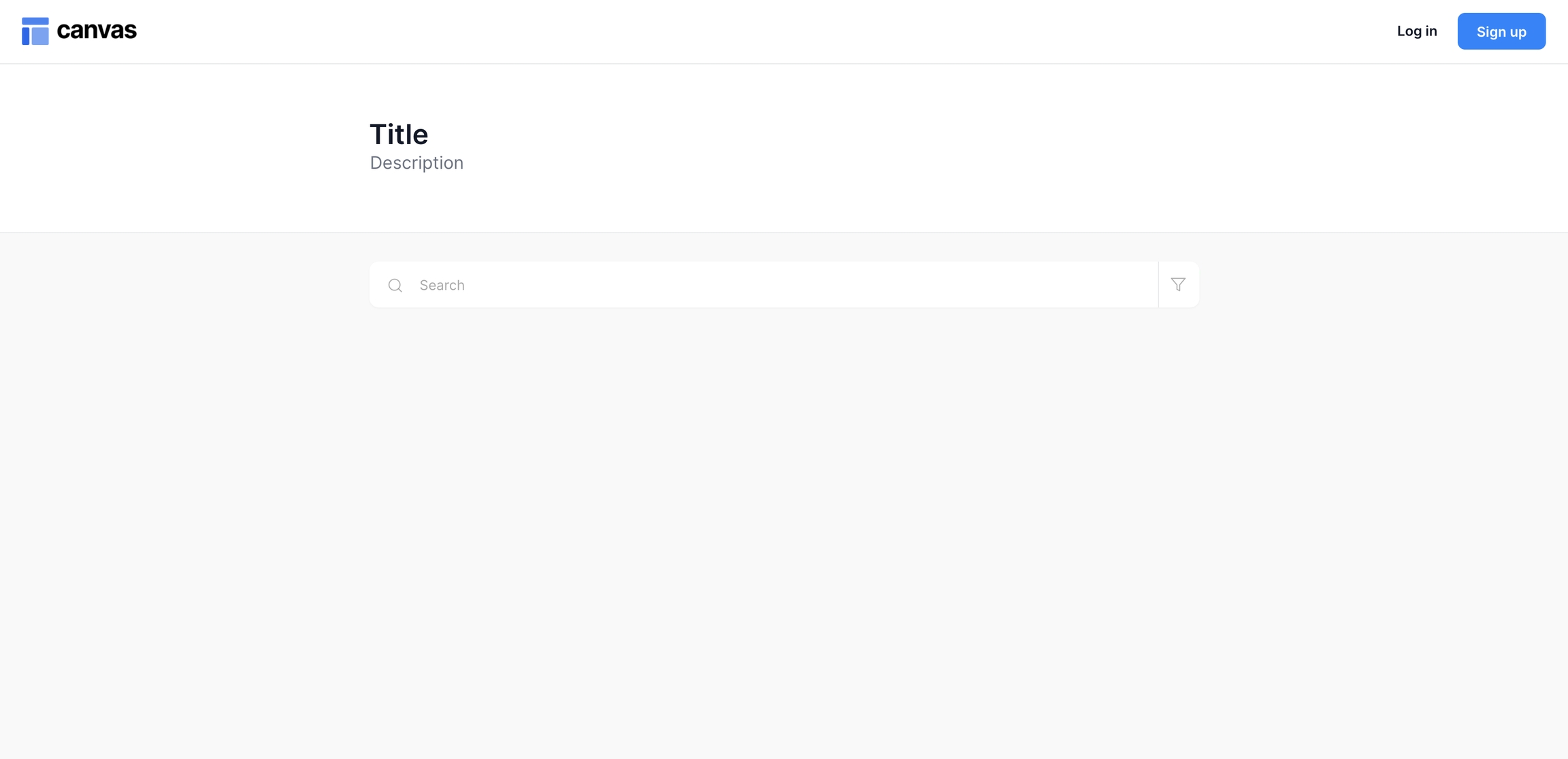 Responsive layout for a generic search page with a search bar at the top. Includes common filter options in a focus group. No workflows are associated with this block.