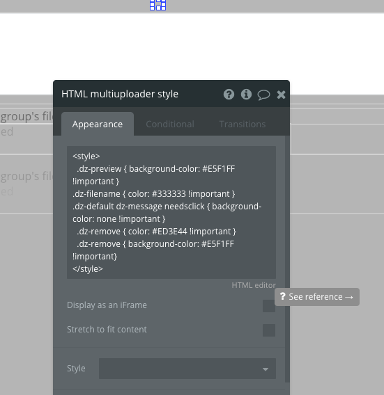 HTML multiuploader style includes a code snippet that changes