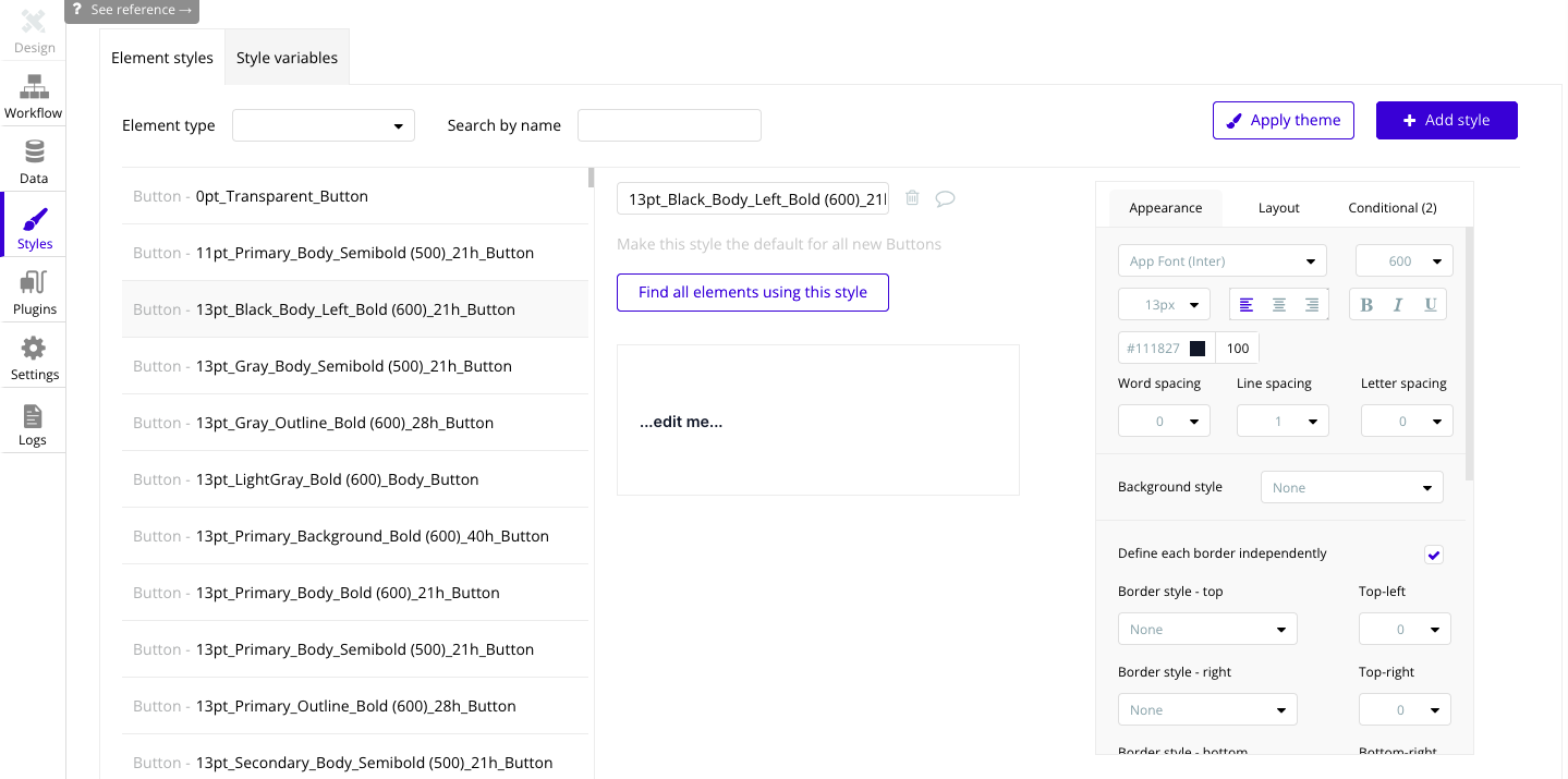 You can make adjustments to these styles by going to the Styles tab in the Bubble editor.