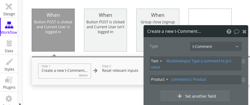 t-Commentdata type that represents the object on which you want users to comment. For example, if you want users to comment on products, you should add aProductfield.Open the comments_onelevel reusable