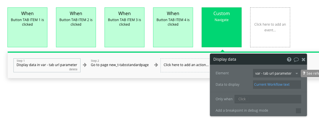 In the workflows tab, you will see a custom workflow called Navigate. This custom workflow has a parameter for