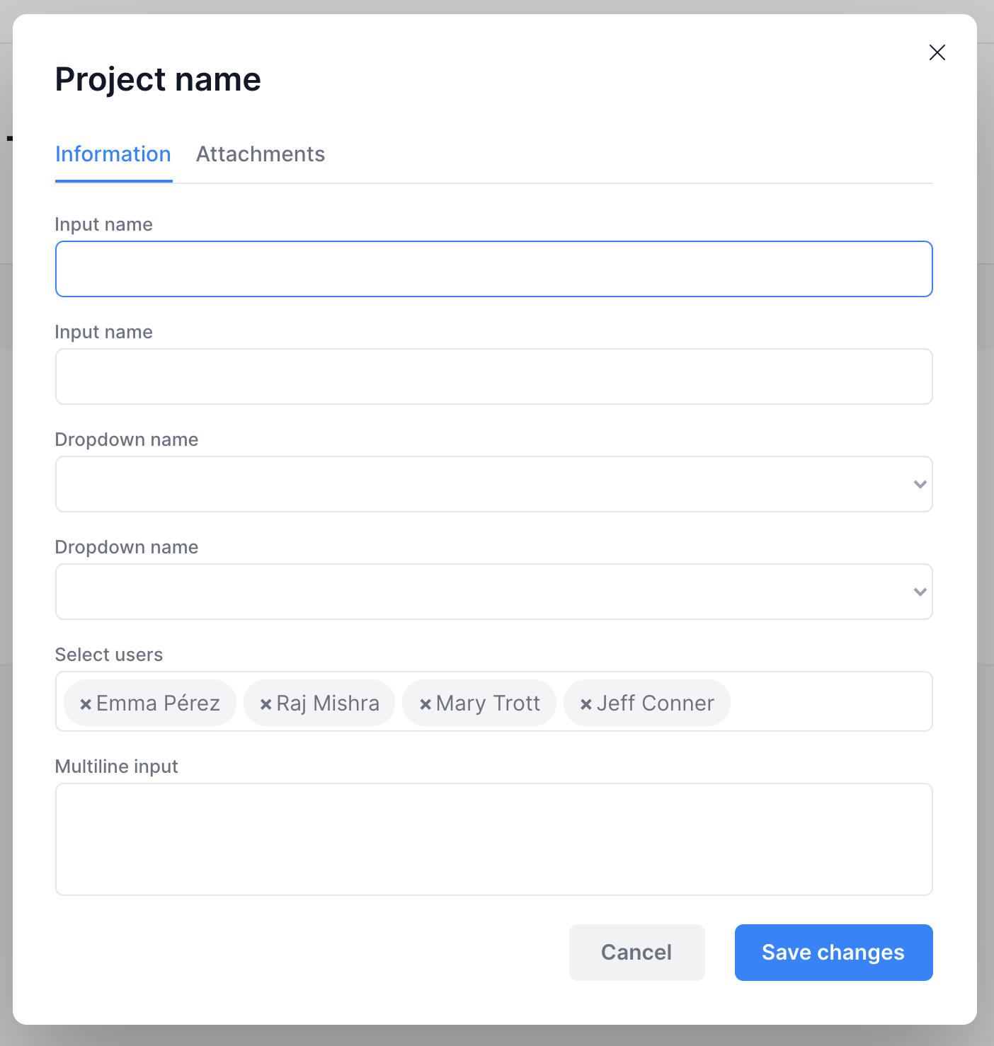 Clicking on Group close (toggle tabs popup), Button Cancel, and Button Save changes will close the popup
